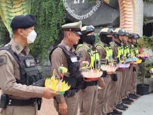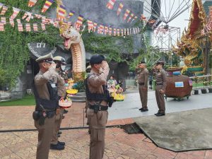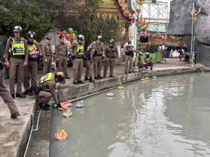 รอง ผกก.ป.สภ.รัตนาธิเบศร์ พ.ต.ต.พลวัฒน์ เตวิน ร.ต.ท.สมาน โพธิ์ศรีรอง สว.(ป.)พร้อมกำลังสายตรวจรวม 18 นาย ลอยกระทง ณ วัดบัวขวัญพระอารามหลวง ตำบลบางกระสอ อำเภอเมือง จังหวัดนนทบุรี