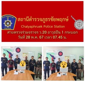 ได้เดินทางมาตรวจเยี่ยมเจ้าหน้าที่ตำรวจ สภ.ชัยพฤกษ์ และมอบรางวัลแก่ จนท.สายตรวจที่มีผลการจับกุมอาวุธปืนได้ โดยมี
