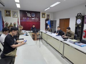 พร้อมข้าราชการตำรวจระดับ รองผู้กำกับ และสารวัตร สภ.บางศรีเมือง และ กก.สส.ภ.จวนนทบุรีได้ประชุมเร่งรัดติดตามคนร้ายก่อเหตุ 241 หน้าร้านกุ๊กศรี ถ.บางกรวย-ไทรน้อย