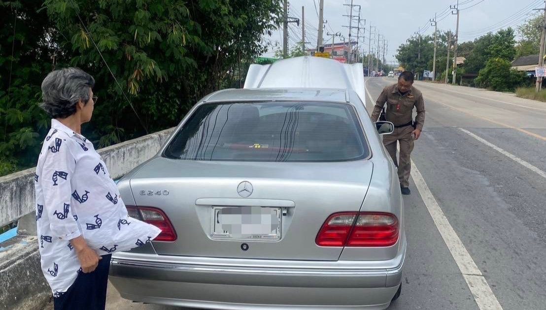 ขณะออกตรวจการจราจรมาถึงบริเวณ สามแยกไฟแดงหนองเพรางาย ถนนไทรน้อย-ต้นเชือก พบรถยนต์เก๋งจอดเสีย ลูกปืนล้อแตกไม่สามารถใช้ความเร็วปกติได้