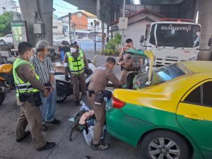 พฤติการณ์ ตามวันเวลาที่เกิดเหตุขณะ เจ้าหน้าที่ตำรวจจราจร อำนวยการจราจรอยู่บริเวณแยกพระราม 5 พบรถแท็กซี่คันเกิดเหตุมีลักษณะพิรุธต้องสงสัยจึงแสดงตัว เพื่อ ขอทำการตรวจค้น ผลการตรวจค้น พบว่ามีการใช้ป้ายแสดงการเสียภาษีปลอม เพื่อให้เจ้าหน้าที่เข้าใจว่า เป็นรถที่มีการเสียภาษีถูกต้องแล้ว จากนั้น จึงตรวจค้นภายในรถพบอาวุธปืนของกลาง 2 กระบอกและเครื่องกระสุนปืน ของกลาง จึงได้แจ้งข้อกล่าวหานำตัวส่งพนักงานสอบสวนดำเนินคดีตามกฎหมาย