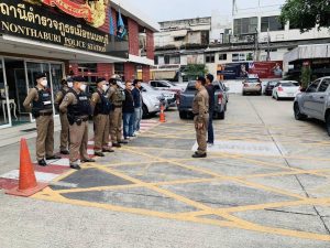 ประชุมชี้แจงปล่อยแถว เจ้าหน้าที่ตำรวจ ผู้มีภารกิจรักษาความสงบเรียบร้อย งานกิจกรรม งานประจำปีศาลเจ้าพ่อหลักเมืองฯ ครบรอบ 60 ปี ฯ บริเวณหน้า สภ. เมืองนนทบุรี โดยมีรายละเอียด ดังนี้