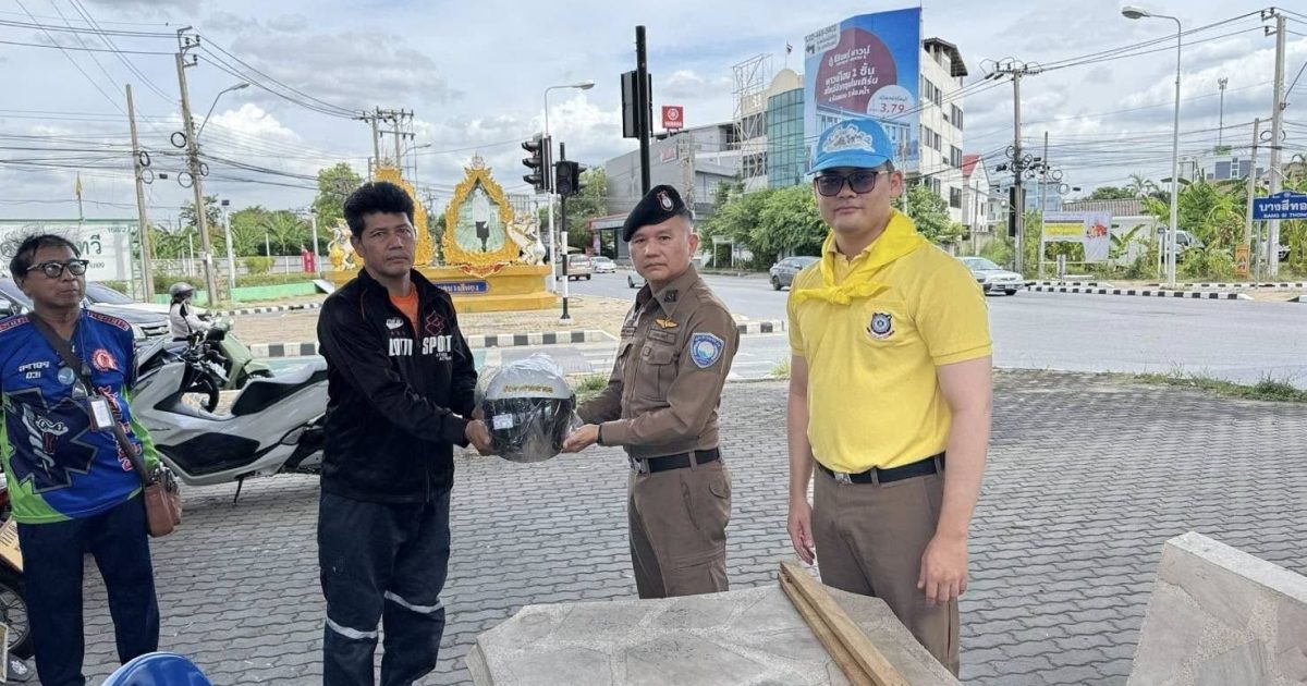 🔴 ได้รับความอนุเคราะห์จากผู้กำกับ สภ.บางกรวย เป็นผู้มอบหมวกนิรภัยให้ประชาชนที่เข้าจุดบริการประชาชน ที่แยกบางสีทอง ต.บางสีทอง อ.บางกรวย จ.นนทบุรี ผลการปฏิบัติได้รับคำขอบคุณ และชื่นชมในกิจกรรมจิตอาสาแจกหมวกนิรภัย ช่วงเทศกาลสงกรานต์ ปี 2568