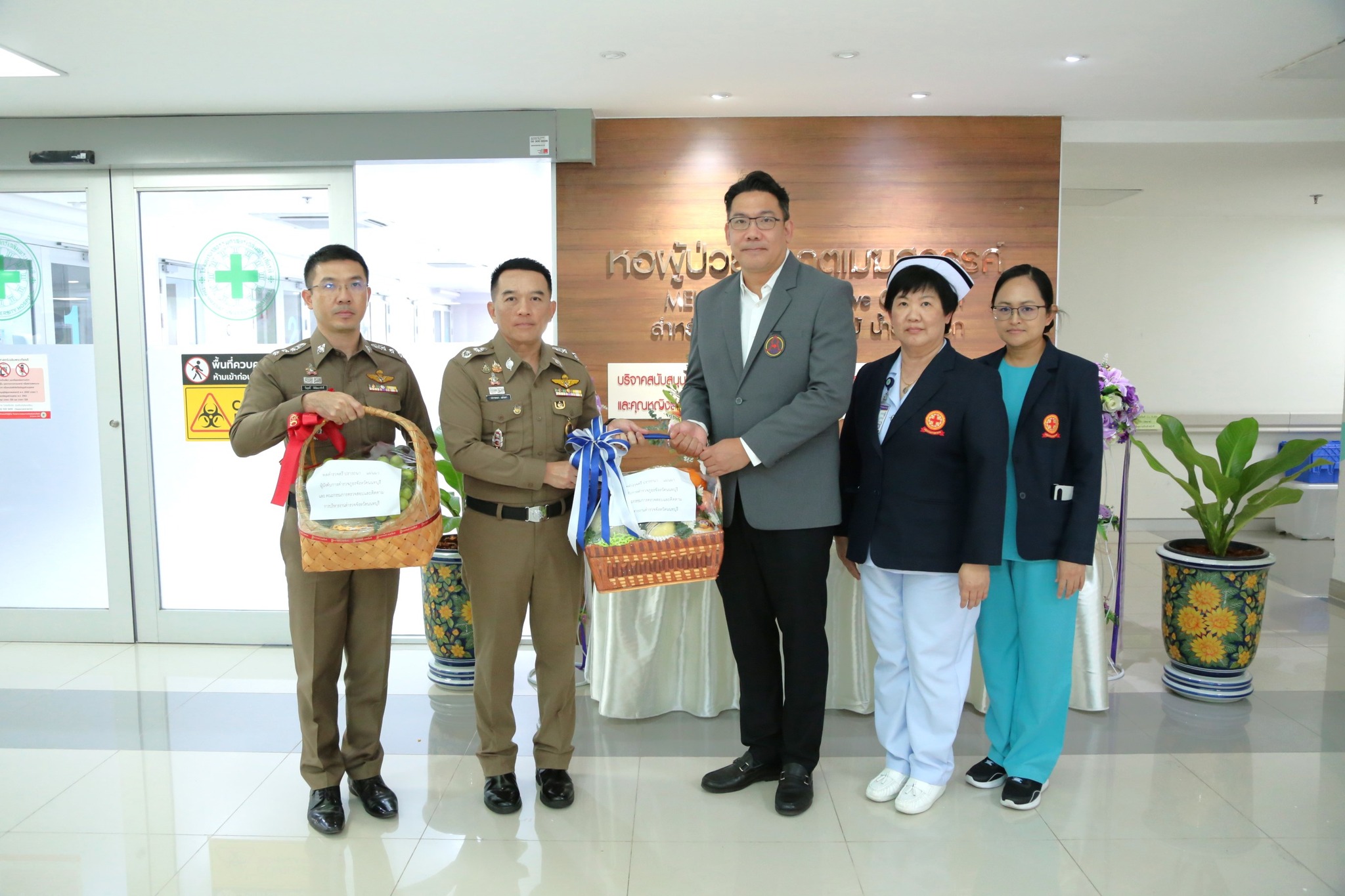 สภ.เมืองนนทบุรี ภ.จว.นนทบุรี เรื่อง ผู้บังคับบัญชาเยี่ยมให้กำลังใจ ตำรวจได้รับบาดเจ็บในการปฏิบัติหน้