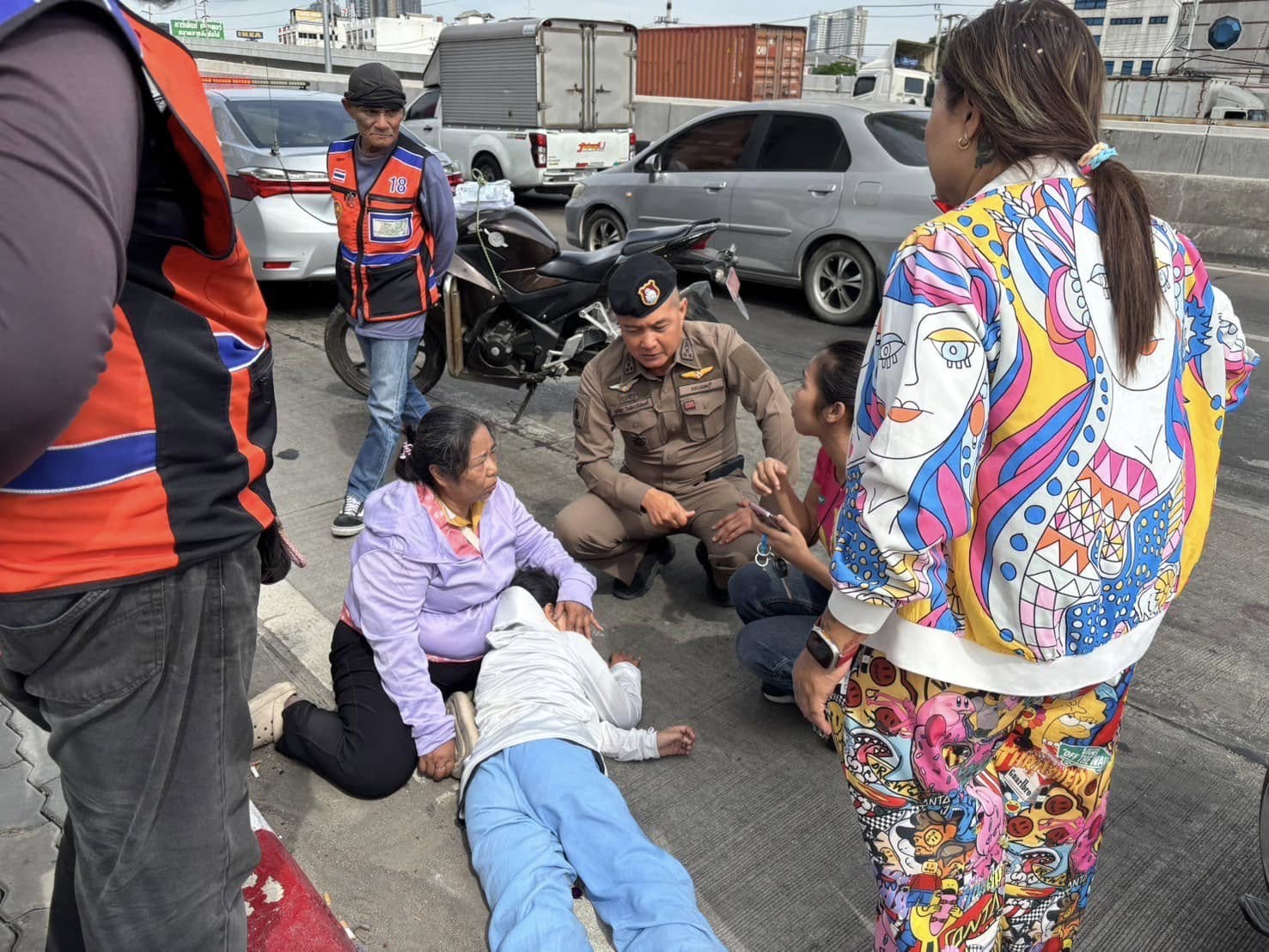 ภ.จว.นนทบุรี ————————— เรื่อง นนทบุรี 4 ,บางใหญ่ 20 และสายตรวจ สภ.บางใหญ่ร่วมให้การช่วยเหลือผู้บาดเจ