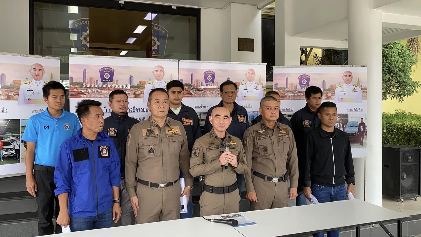 ผบก.ภ.จว.นนทบุรี แถลงข่าวการจับกุมและตรวจยึดรถยนต์สวมทะเบียน และ ส่งมอบรถยนต์คืนแก่เจ้าของที่แท้จริง
