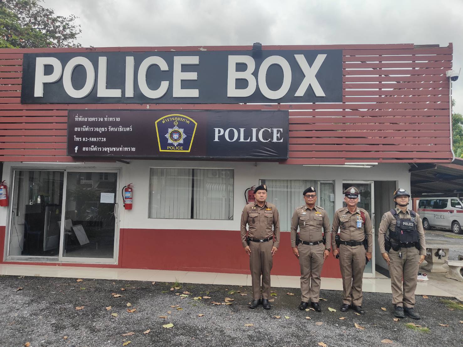 พ.ต.อ.สถิตพร บุณยรัตพันธุ์ รอง ผบก.ภ.จว.นนทบุรี ตรวจหมู่บ้านลดาวัลย์ ตำบลบางรักน้อย อำเภอ เมืองนนทบุรี