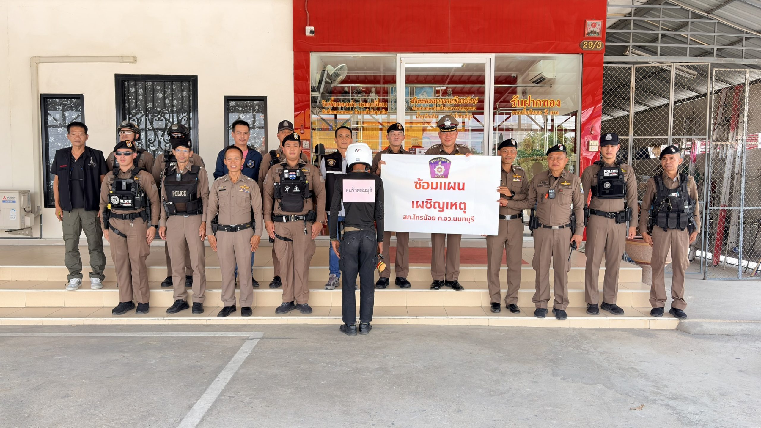 ️พ.ต.อ.เมธา วงศ์อนันต์นนท์ รอง ผบก.ฯ ปรก.ภ.จว.นนทบุรี ร่วมซักซ้อมแผนเผชิญเหตุ คนร้านชิงทรัพย์ร้านทอง