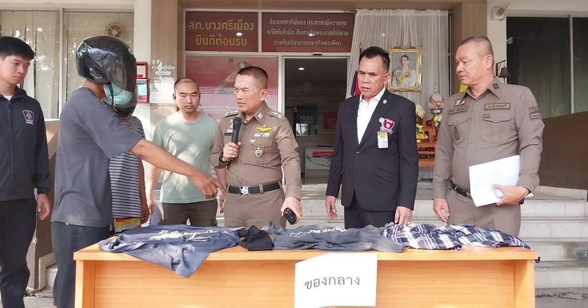 โดยแจ้งข้อกล่าวหาให้ทราบว่าร่วมกันลักทรัพย์ในเวลากลางคืน โดยใช้ยานพาหนะเพื่อสะดวกแก่การกระทำผิดหรือพาทรัพย์นั้นไปจับกุมตัวได้ที่ หมู่ที่ 4 ต.ไทรน้อย อ.ไทรน้อย จ.นนทบุรี ต่อมาได้ทำการตรวจยึดรถจักรยานยนต์