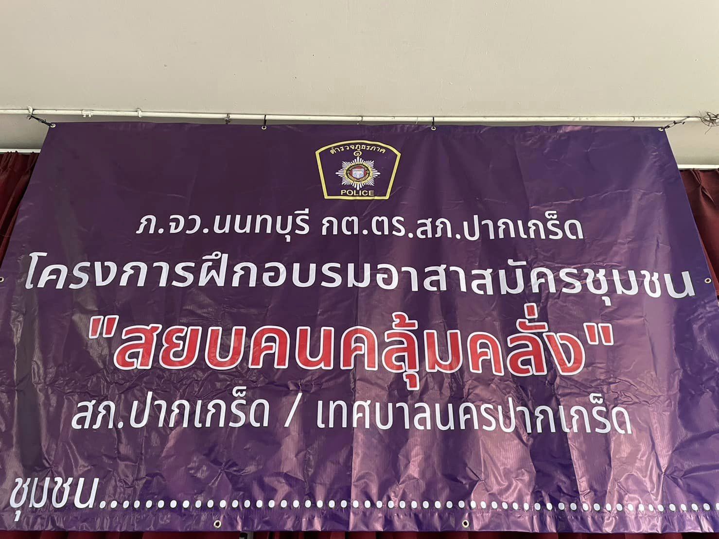 สภ.ปากเกร็ด นนทบุรี 4 เปิดพิธีฝึกอบรม“โครงการฝึกอบรมอาสาสมัครชุมชนสยบคนคลุ้มคลั่ง” ——